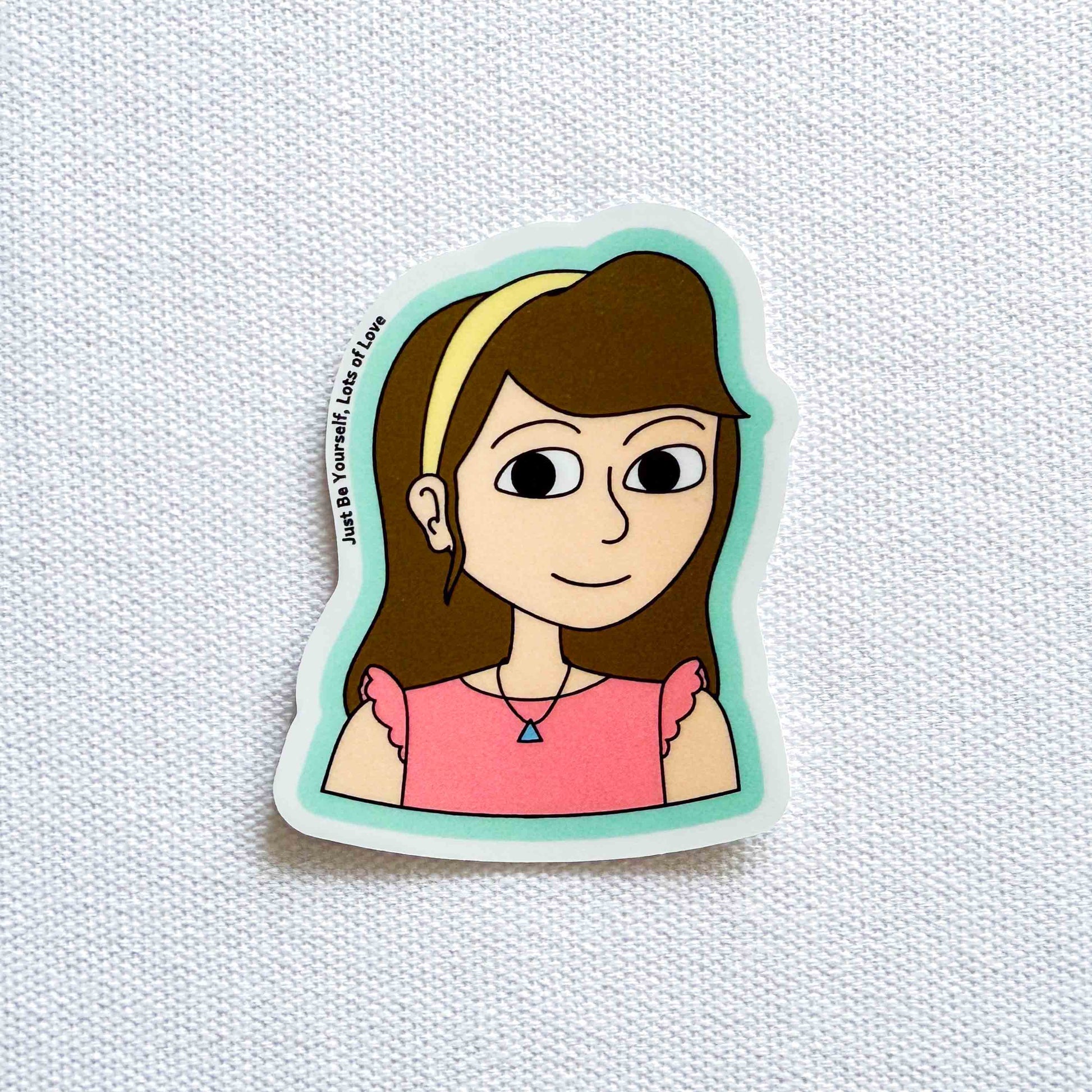 Vinyl sticker of Love, the main character from 'Lots of Love, Just Be Yourself.' Perfect for personalising laptops, notebooks, water bottles, and more! This high-quality sticker features bubble-free vinyl with a matte laminate finish for durability.